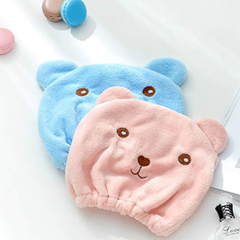 1 blue bear hair dry towel hat and 1 pink bear hair dry towel hat