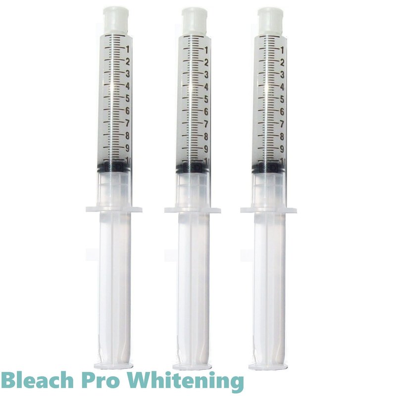 This professional whitening gel package includes 3 extra large 10ml whitening gel syringes in Maximum Strength 44% strength Carbamide Peroxide. It would take 10 of the standard 3ml whitening syringes to equal that amount of gel. The LARGE 10ml syringe dispensers are easy to handle and represent an unmatched VALUE in terms of price, quantity and quality. High viscosity gel provides maximum adhesion to tooth surfaces. Whitening gel syringe dispensers are USA Made by Becton Dickinson (NYSE:BDX) a US based company, the whitening gel is a dental industry standard utilized by clinics and offices throughout the USA and internationally. Gel is produced under strict laboratory environment and ongoing quality control checks ensure a consistent, professional application. Bleach Pro is a licensed insured supplier of quality whitening kits, gel and accessories since 1999. What is Carbamide Peroxide? Carbamide Peroxide is the primary active ingredient or bleaching agent in the professional whitening gel. It is essentially a variation of Hydrogen Peroxide developed especially for dental whitening. * The maximum strength 44% whitening gel is not recommended for first time users. It has more potential for tooth sensitivity and/or gum irritation than other milder gels. Gel provides the chemical reaction required to safely remove stubborn stains from tobacco, coffee, tea, red wines, foods, yellowing from age and more. The unique formula is pH balanced with high adhesion qualities designed to stay on tooth surface. The at-home procedure is essentially what a professional dentist would prescribe. The difference is the cost. Get the radiant smile you desire without an expensive trip to the dentist. Results are long lasting and your satisfaction is guaranteed. We strive to provide exceptional customer service.