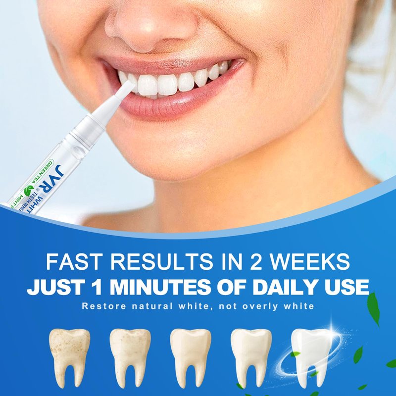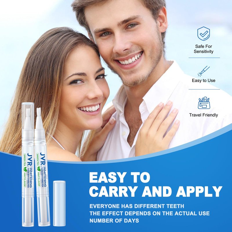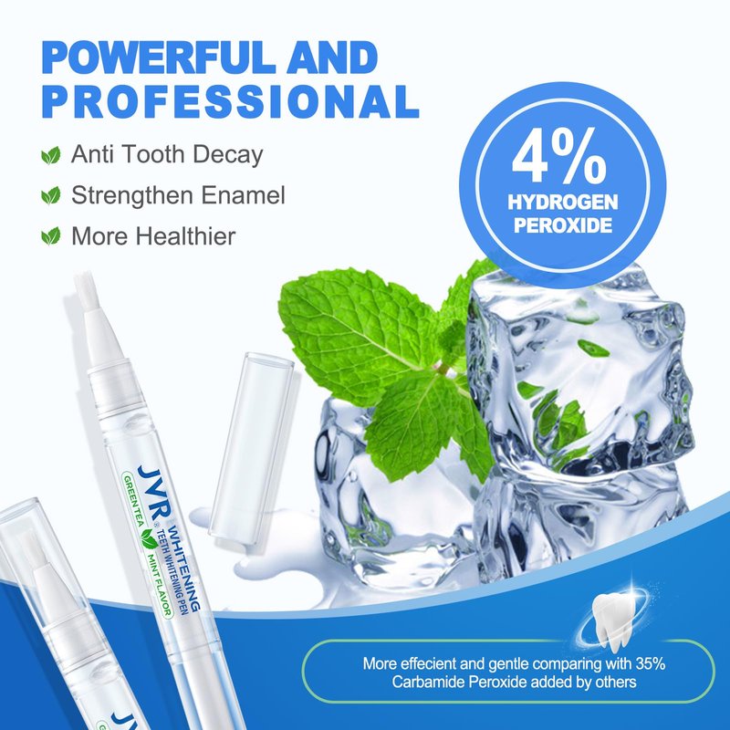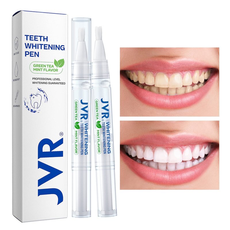 - [REMOVE YEARS OF STAINS - FAST TEETH WHITENING] JVR Professional Teeth Whitening Pen contains hydrogen peroxide, a safe peroxide, which can effectively remove the stains accumulated for many years due to smoking, drinking coffee, tea, wine, soda water, etc. . It can whiten your teeth by 4-8 shades with consecutive use.