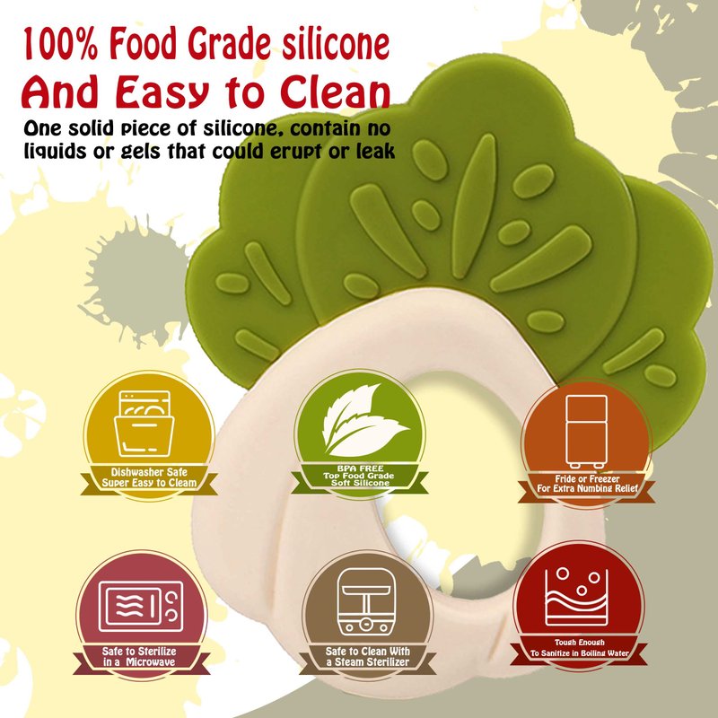 Teething Toys 3-6 Months, Teethers for Babies 3-6 6-12 Months for Teething Relief, Baby Teether Teething Toys 100% Silicone, Newborn Infant Sensory Baby Toys 0-6 Months,bebe mondo (Cauliflower)