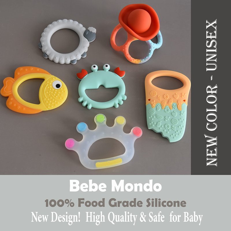 - INFANT TEETHING TOYS: It increases children's teeth occlusion capacity to fulfil the baby's psychological demands for comfort and teething physiological needs. When a baby is irritated, weary, drowsy, sucking on teething toys for babies 0-6 month, 6-12 months, 12-18 months. More effective tooth maintenance can enhance the baby's willingness to eat. Bebe Mondo silicone baby teether toys are suitable for baby 12 month toys, baby toys 0-3 months, 0-6 months & 12 months.