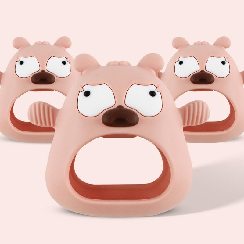 - A Teething Pacifier For 3+ Months Babies:The infant teether is a good ideal for new born sucking babies as a pacifier and as a teething toy.Cute dog-shaped glove teething toys can exercise gums and protect baby's gums.Develops baby's grasping ability.