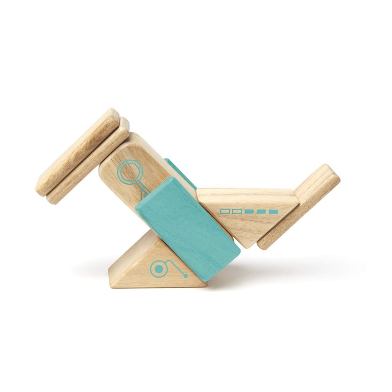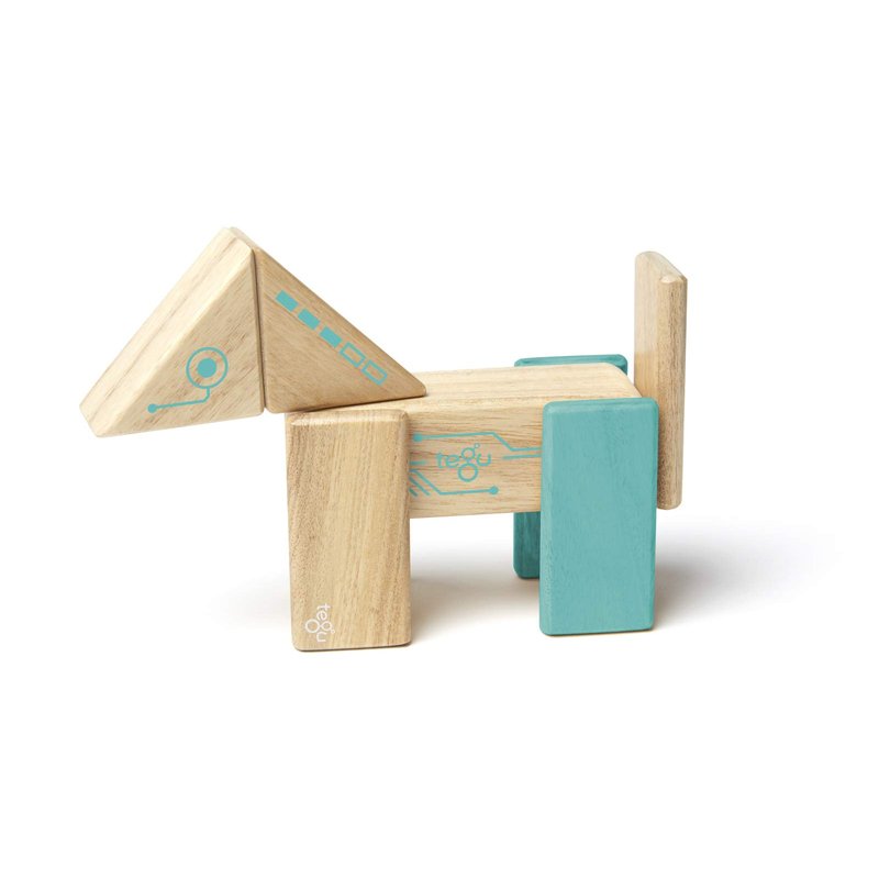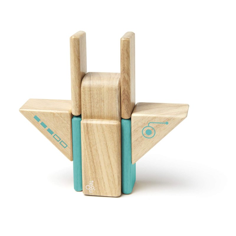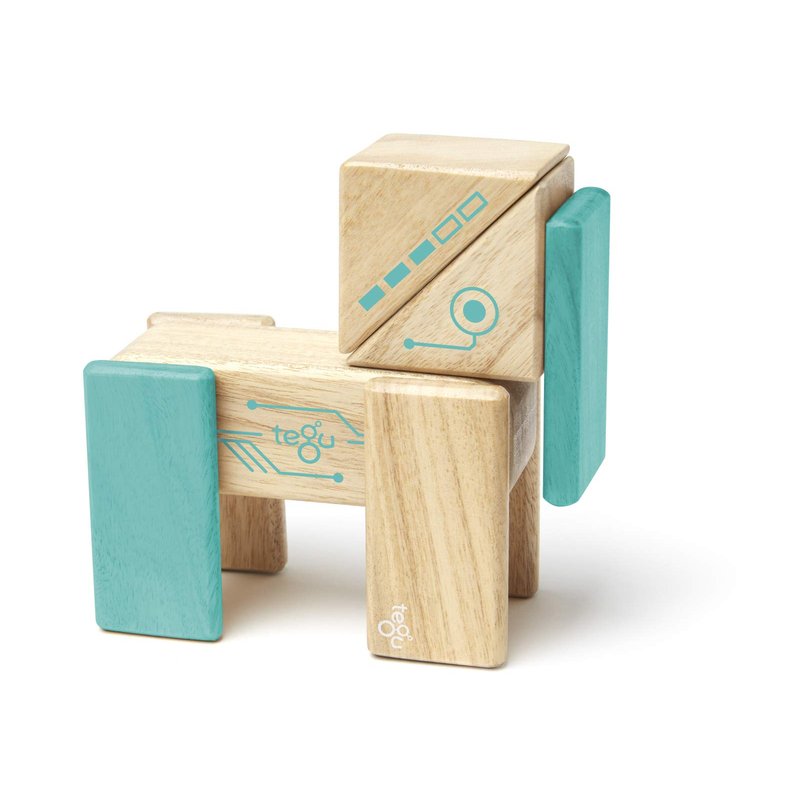 Tegu Robo Magnetic Wooden Block Set, Electric Aqua, 8 PIECE