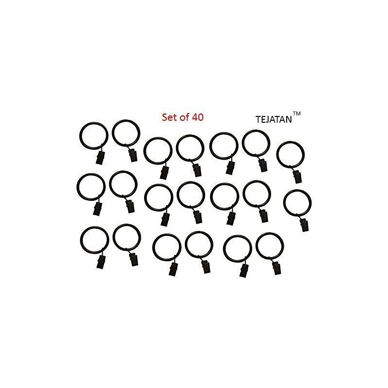 TEJATAN - 2 Inch - Metal Curtain Rings with Clips and Eyelets (Also Known as Rings with Curtain Clips/Curtain Clip Rings/Drapery Rings/Curtain Rings with Clips) (Set of 40)