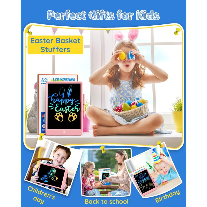 TEKFUN LCD Writing Tablet Doodle Board, 10inch Colorful Drawing Tablet Writing Pad, Easter Basket Stuffers for Kids Toys Gifts for 3 4 5 6 7 8 Year Old Girls Boys (Pink)