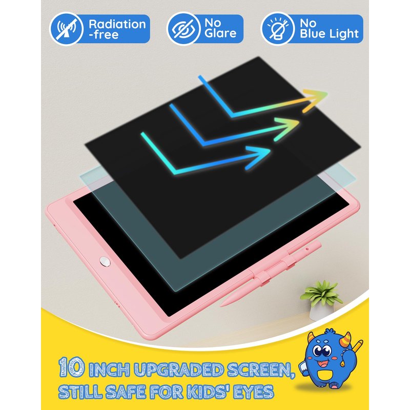 - Free Child’s Imagination: Tekfun LCD writing tablet for kids provides 10 inches of space for kid’s writing and drawing, free children's imagination. The eye-protection colorful screen of doodle board provides a better painting experience, avoiding injury to a child’s eyes from long-term use.