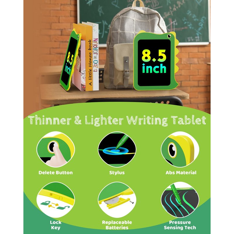 - 【Eye-protecting LCD Writing Board】 Equipped with the latest LCD pressure-sensitive technology and an 8.5-inch LCD color screen. This toddler drawing board toy is radiation-free and glare-free, ensuring safety and comfort even for extended use.