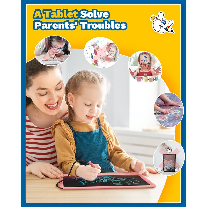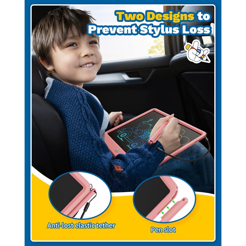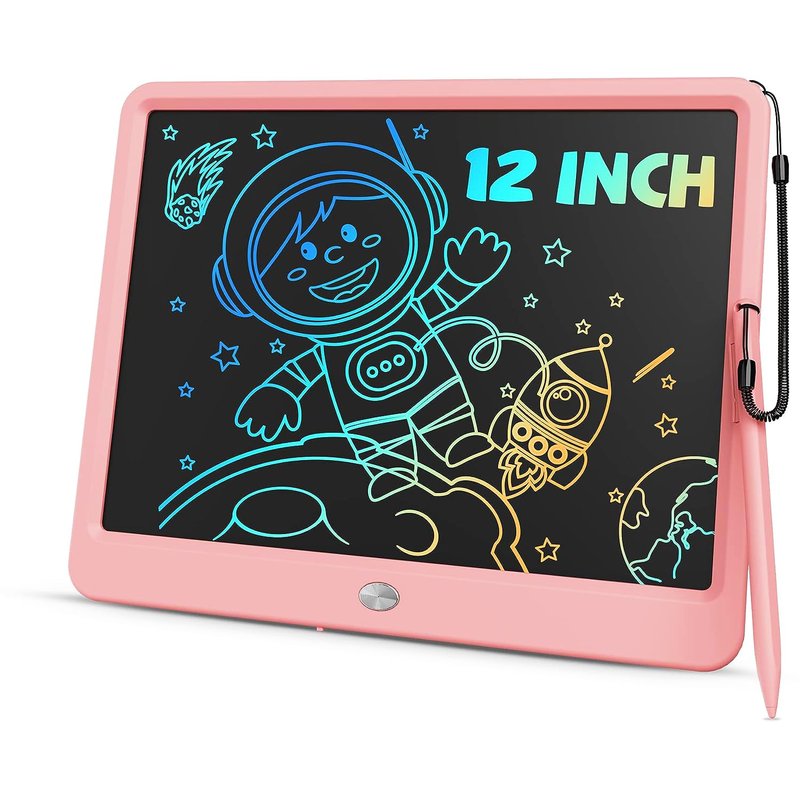 TEKFUN Toys for Girls 12in LCD Writing Tablet, Erasable Doodle Board with Anti-Lost Stylus, Mess Free Coloring Drawing Board, Travel Car Trip Games Toys Birthday for 3 4 5 6 7 Girls Pink