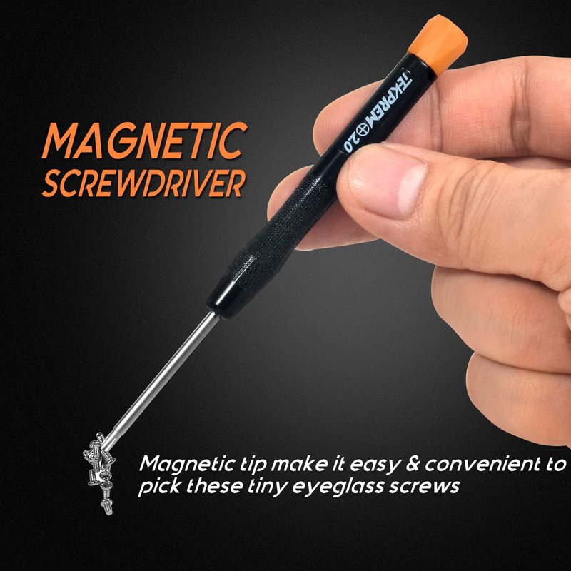 - [Magnetic Eyeglasses Screwdrivers]: This eyeglass tool kit comes equipped with two small magnetic screwdrivers: a 2.0mm flathead screwdriver and a 2.0mm Phillips screwdriver. The magnetic tips facilitate effortless retrieval of these tiny eyeglass screws, making the process exceptionally easy and convenient.