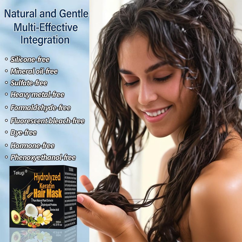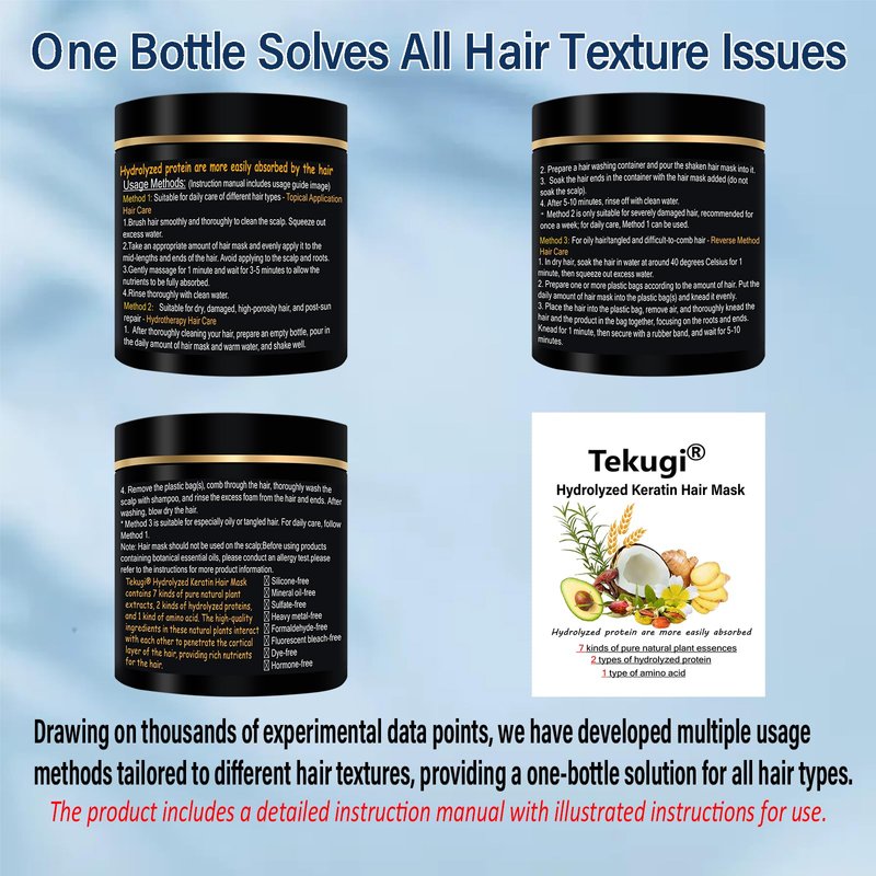 - 1.Keratin Protein Treatment at Home : The hydrolyzed keratin in Tekugi pure plant hair mask is an essential component of hair;Hydrolyzed wheat protein is a plant protein with natural repairing properties , deeply repairing damage from perming and dyeing, restoring hair's healthy shine and smoothness.