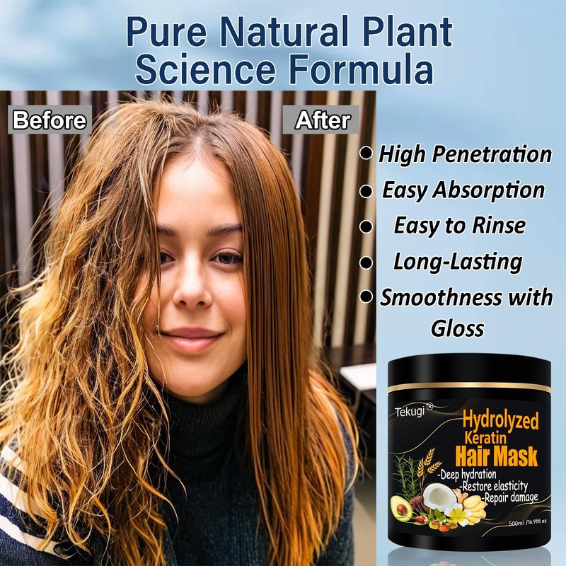 - 4.Easy Absorption, Easy Rinse : Tekugi Hydrolyzed Keratin Hair Mask uses hydrolyzed proteins that are smaller and easier to absorb than collagen molecules. The high-quality plant oils it contains ensure that nutrients are easily absorbed rather than merely coating the hair surface, making it easy to rinse out.