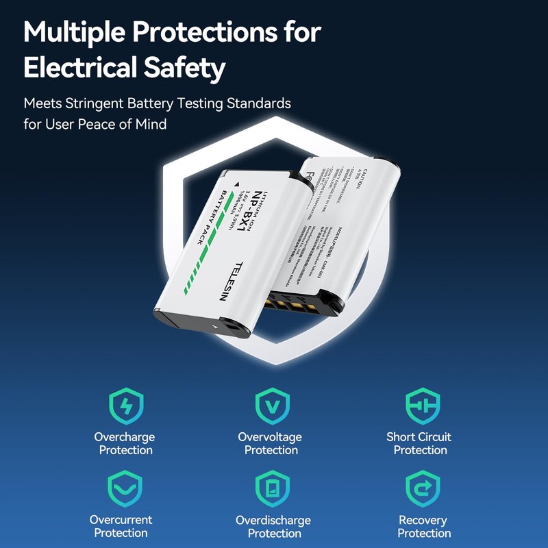 - đ·ă100% Safety, 100% Peace of MindăBuilt-in multiple protections (over-voltage protection, over-current protection, short-circuit protection, over-temperature protection, and over-charging protection) with high quality fireproof construction. Our batteries are CE/FCC/RoHS certified, and all products are rigorously tested by the manufacturer to ensure safety for normal use. Each battery undergoes strict quality control for safe and long-lasting performance.