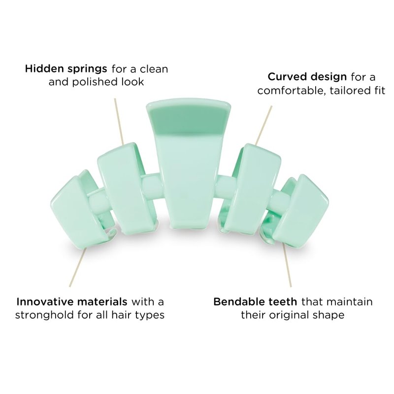 TELETIES - Medium Hair Clip - Spring Collection - Hair Claw Clips for Women - Strong Grip, Bendable Teeth, Curved Design - For All Hair Types and Textures - Mint