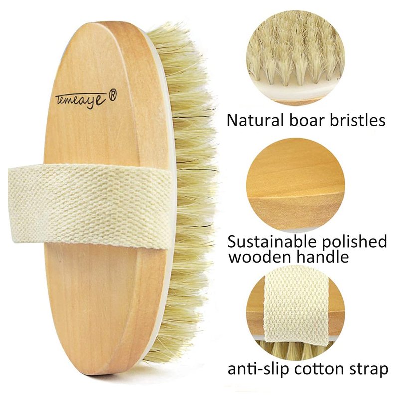 TEMEAYE Dry Brushing Body Brush, Body Skin Exfoliator Scrubber, for Skin Dry Brushing Massage, Lymphatic Drainage & Blood Circulation Improvement, Medium Strength (Boar Bristle and Wooden Handle)