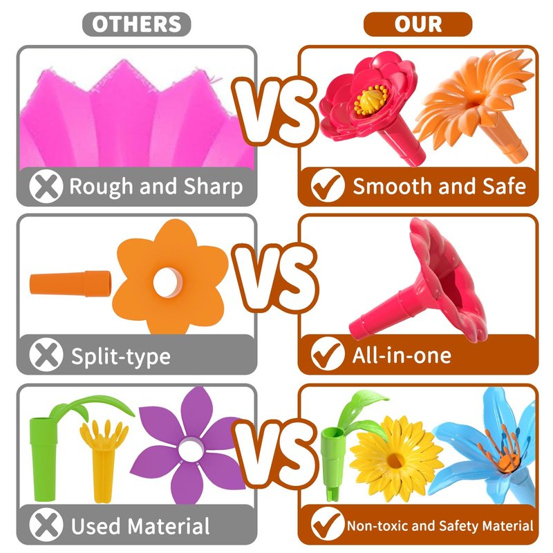 - Safe Materials - Your child's safety always comes first. The Garden Building Toys are made with Eco-friendly materials. It is in line with ASTM/CPSIA U.S. toy safety standards, non-toxic, eco-friendly, smooth surface, you don't have to worry about hurting your child's hand.