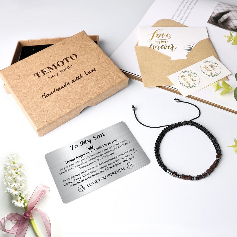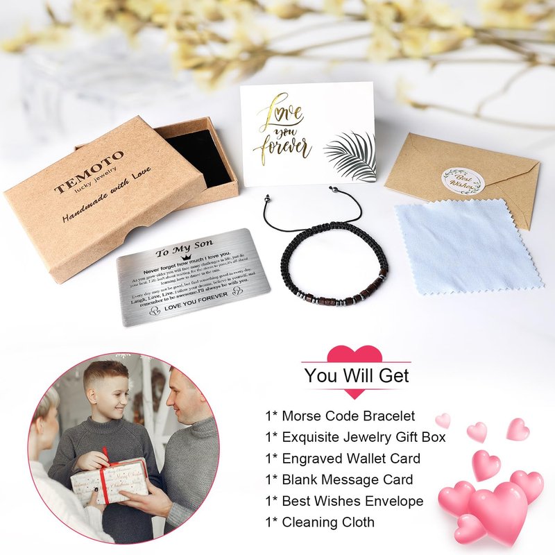 Temoto Easter Basket Stuffers to My Son Bracelet from Mom - Easter Gifts for Teens Birthday Gifts for Men with Engraved Wallet Card Morse Code Bracelets,Son Bracelet Gifts for Him
