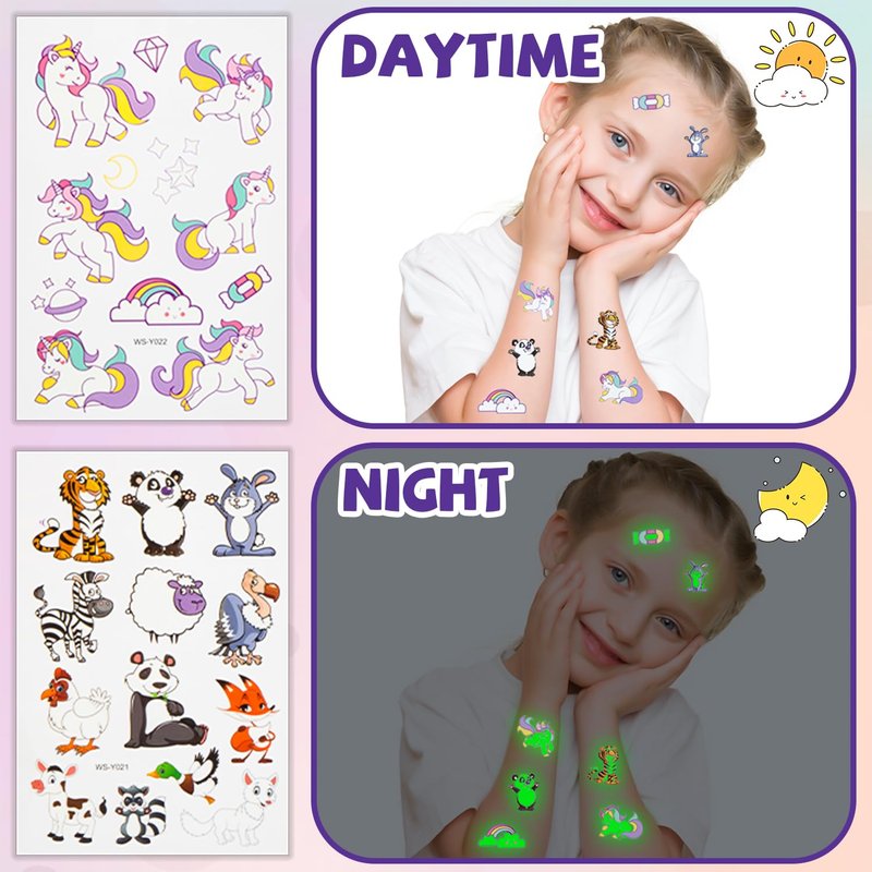 - 🎁【PERFECT GIFT GIVING GIFT】 This glitter tattoo kit contains enough matching packages to provide hours of fun and entertainment for kids, keeping them away from electronic screens and protecting their eyesight. Have fun creating unique art and exciting tattoos with your family or friends. Cute gift box set design is perfect gift for girls or boys as a birthday gift, children's day gift, Christmas gift and more.