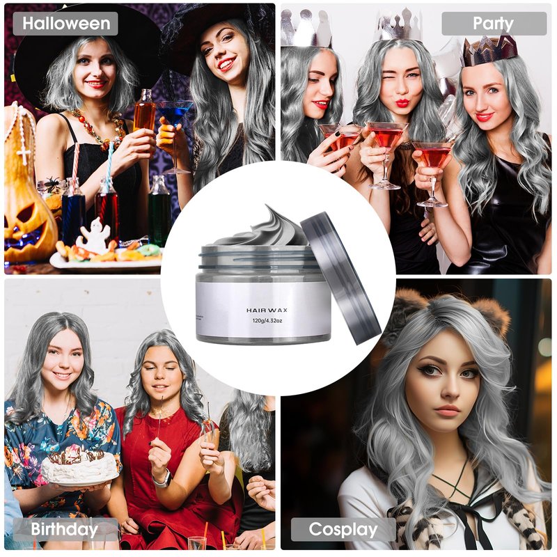 Temporary Hair Wax, Hairstyle Mud Cream, Natural Hair Coloring Wax Hair Gel Styling Dye Ash for Cosplay, Parties, Masquerades, Christmas, Weddings, Birthdays, and Halloween. etc