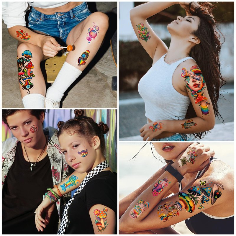 - 🍄【Wearing Unique Designs Tattoos to Show Your Personality】Different styles mushroom designs. These fake tattoos stickers are drenched in colors of another world, another reality, ascending a totally different plane of consciousness.