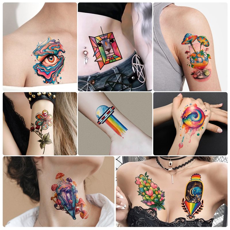 - 🍄【Waterproof Realistic Long Lasting Temporary Tattoos】These classic watercolor realistic temporary tattoo are waterproof, non-toxic and non-allergic. Safe for all skin and all ages over 3 years old. It can last about 3-7 days.