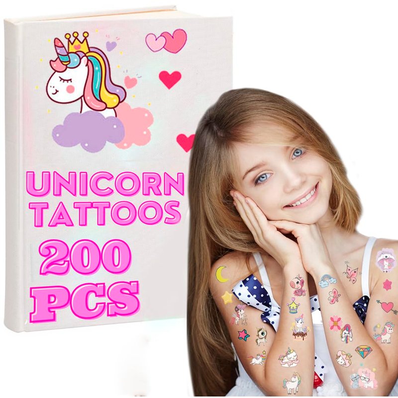 Temporary Tattoos for Girls - Unicorn Magical Bliss Whimsical Designs, Safe and Easy to Apply, Perfect for Parties Favors, Gifts, and Imaginative Play - Set of 200