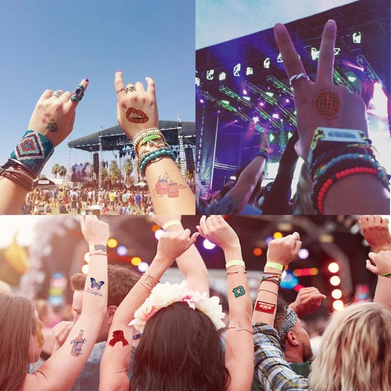 - šćMulti-PurposećTattoo stickers can not only be applied to body parts such as arms and cheeks, but also to items such as cups, water bottles, phone cases, fridge, and laptop etc. Suitable for decoration in concerts, fan gatherings, themed parties, and other occasions. Ideal for party favors or DIY entertainment, these tattoos add an affordable and creative touch to birthday decorations, contributing to a memorable and enjoyable event.