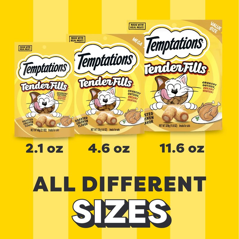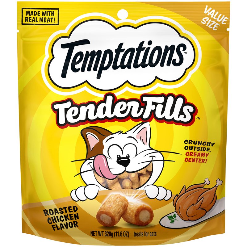 - Try the Irresistible TEMPTATIONS Line: If your cat is craving more than Tender Fills, try out TEMPTATIONS Creamy Purrrr-ee or TEMPTATIONS Adult Dry Cat Food; our delicious products come in a variety of flavors from chicken to beef to catnip that your cat won’t be able to resist