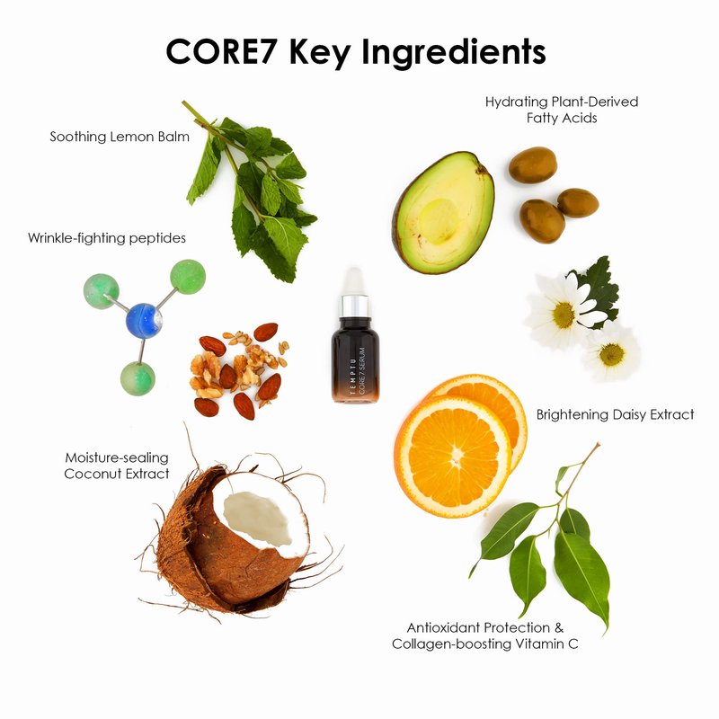 TEMPTU CORE7 Anti-Aging Serum with Vitamin C, Peptides, Coconut Extract - 1 Fl. Oz