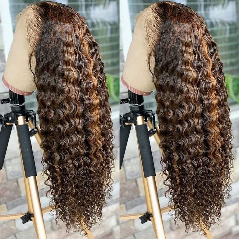 Ten Chopsticks Wigs HD Transparent Highlight Ombre T4/27 Color Invisible Knots Curly 13x4 Lace Front Human Hair Wigs for Women 180% Density Closure Wigs With Baby Hair 22 inch