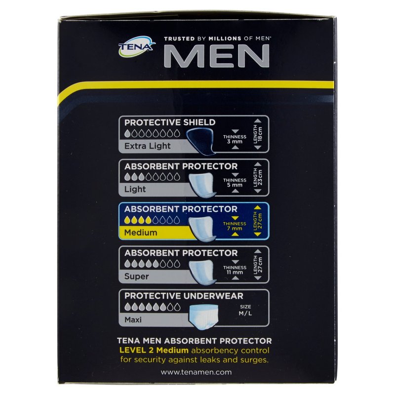- Comfortable shape engineered for a man's body.Ultra absorbent core