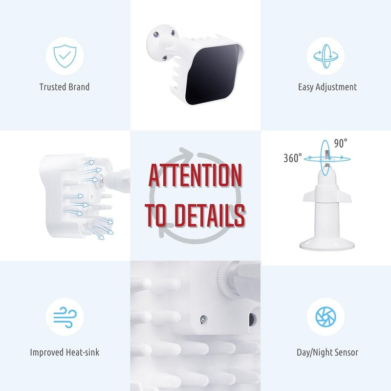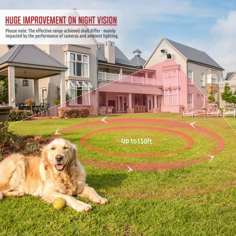 - Redefining "Even Illumination" - With the tailored design integrated lens, the IR lights are more efficiently and evenly spread on your camera's field of view. No more "hot-spot" and washed-out pictures.