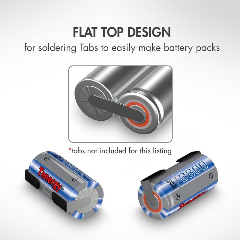 Tenergy Propel Sub C 3800mAh NiMH Flat Top Rechargeable Batteries (Special Size) FLAT TOP