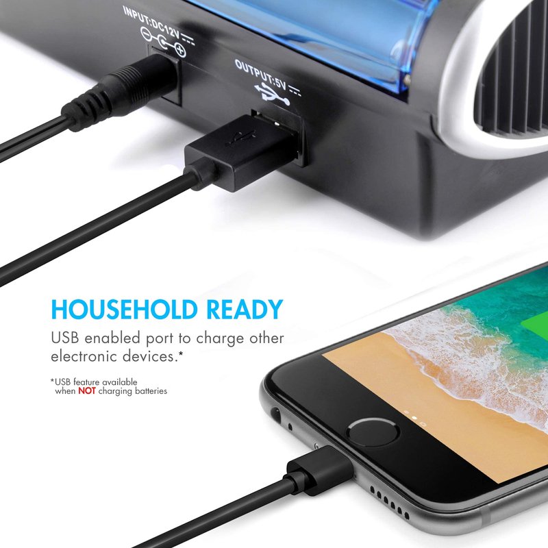 - Very long life time and can be recharged up to 1000 times. Charger and batteries includes a 12-month warranty.