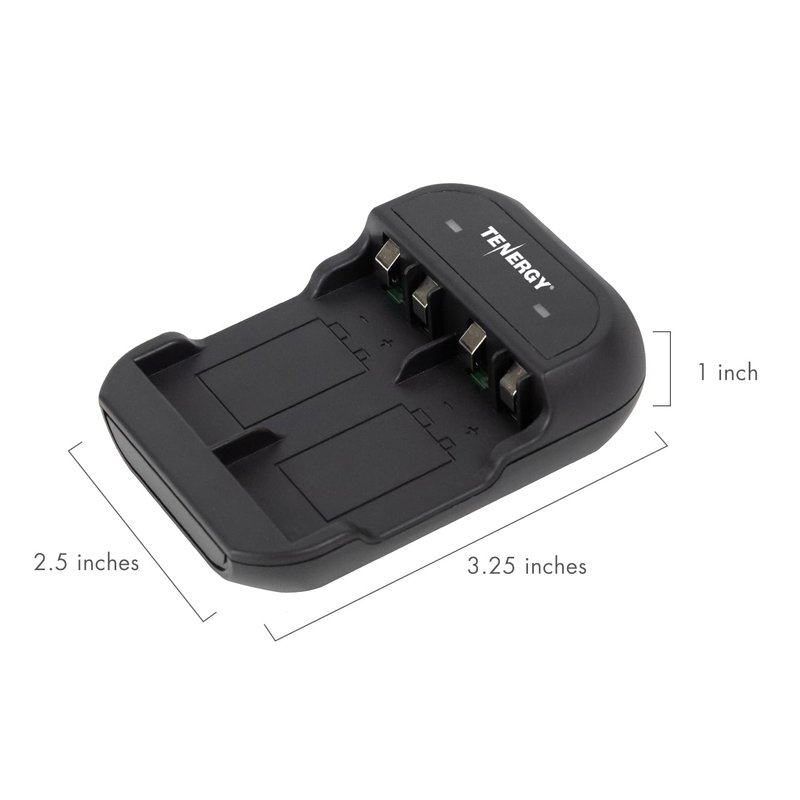 - Tenergy TN141 9V charger is has 2 charging slot and is powered with a micro USB port, recharge anywhere there's a USB slot.