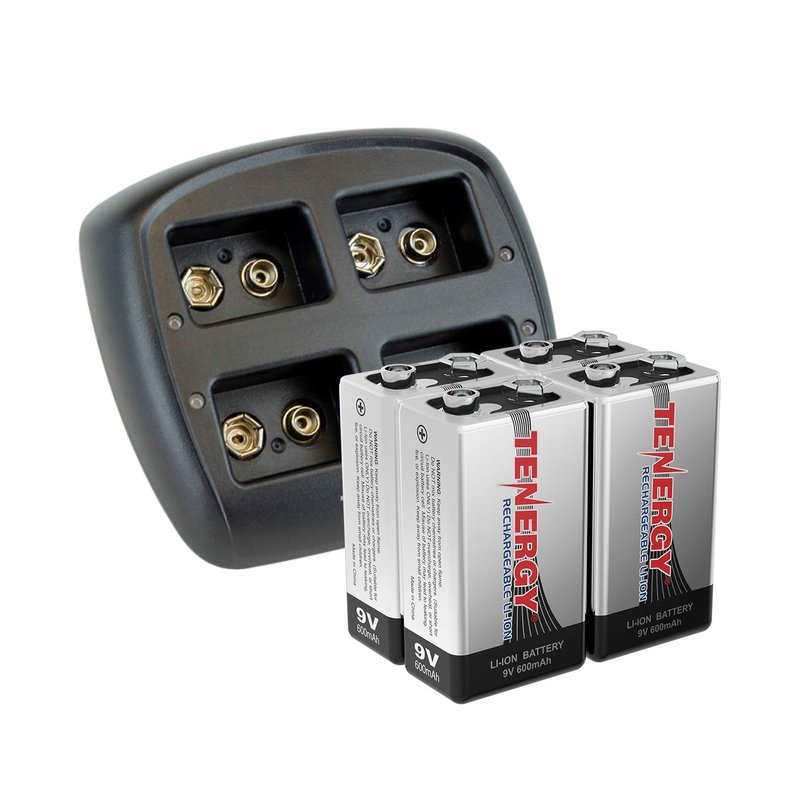 Tenergy TN294 4-Bay 9V Li-ion Battery Charger + 4pcs 9V 600mAh Li-ion Rechargeable Battery