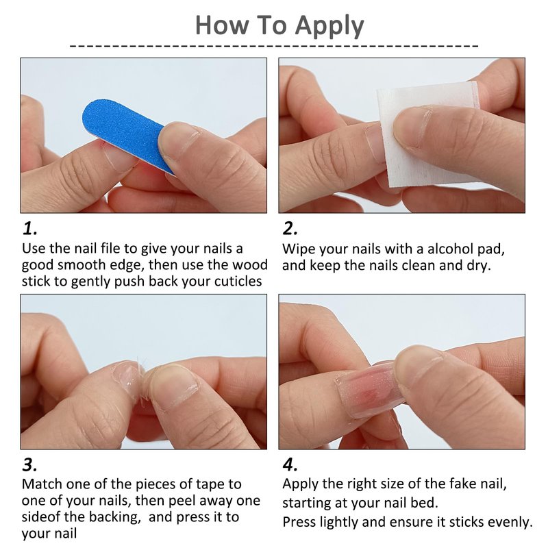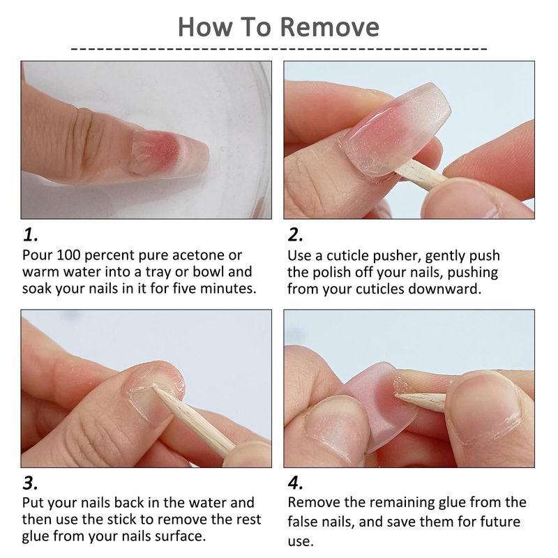 - [How to use and how to remove]: Measure your own nail length according to our size chart and choose the size that best suits you. After receiving acrylic press on nails, follow our instructions. So that fake nails can last for many days. However, as professionals, we do not recommend that you wear it for a long time. Just like makeup, we hope that you can give your fingernails more breathing space.