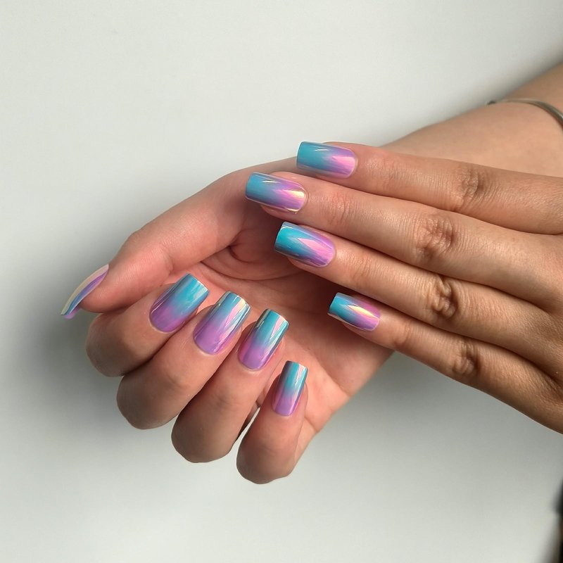 TENPAL Blue Purple Ombre Chrome Press on Nails Medium Square Gel Fake Nails With Glue Acrylic Nails Press ons With Sweet Cool Y2k Style 24pcs/Box Laser Metallic Mirror Glossy False Nails With Designs