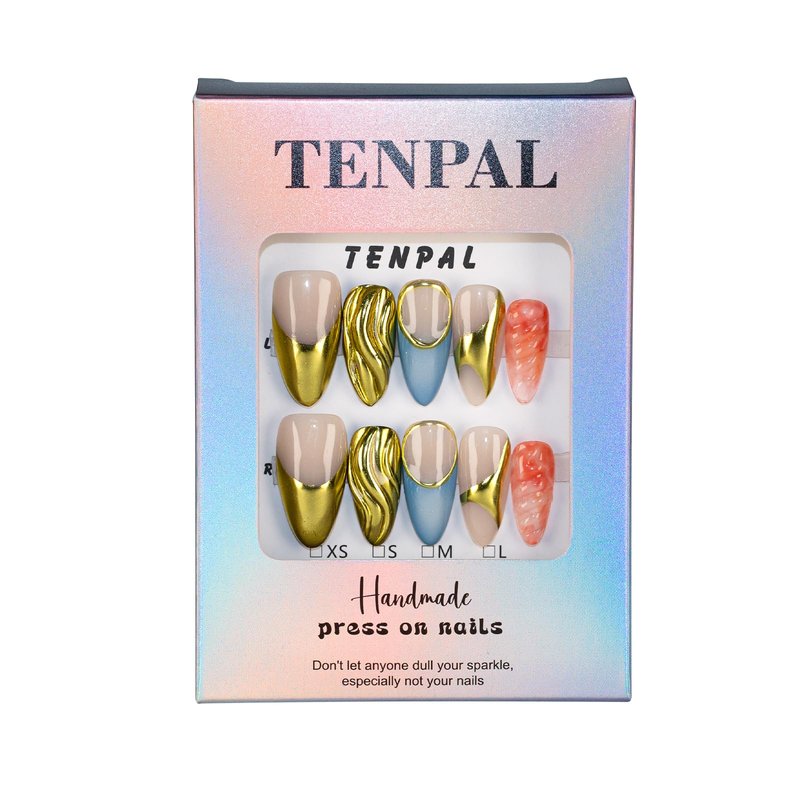 In addition to the simple French Tip classic nail art, we mainly make strong fake nail design, with complex heavy craftsmanship and accessories such as hand-painted, embossed, enamel, full of diamonds, metal, Gem stone, cat's eye, friary,4D Charms etc. False nails shapes contains almond,coffin,Square,stiletto,duck; We have press on nails short,medium,long,extra short length; At TENPAL, each design is inspired by different occasions, different moods and different outfits. Our brand philosophy is to focus on quality to bring women confidence and happiness.