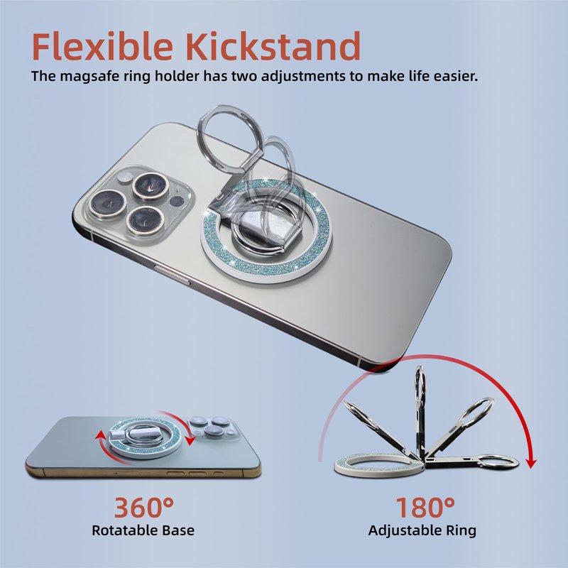 Tensho Cell Phone Ring Holder for MagSafe,360 Degree Rotation Magnetic Phone Grip with Adjustable Kickstand Finger,Strong Metal Mag Safe Finger Stand Compatible with Magsafe iPhone 15/14/13/12 Series.