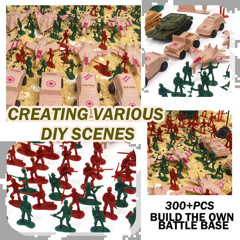 - 【Military Kit】This set of 308 plastic military toys includes a battle map simulation. Package all kinds of toys soldiers, army tanks toys and cars, army helicopters and fighter jets, including a variety of ships. More equipped with a variety of terrain buildings, simulate the most realistic scenes, more diverse gameplay.