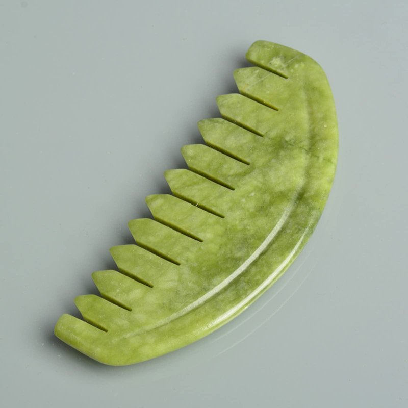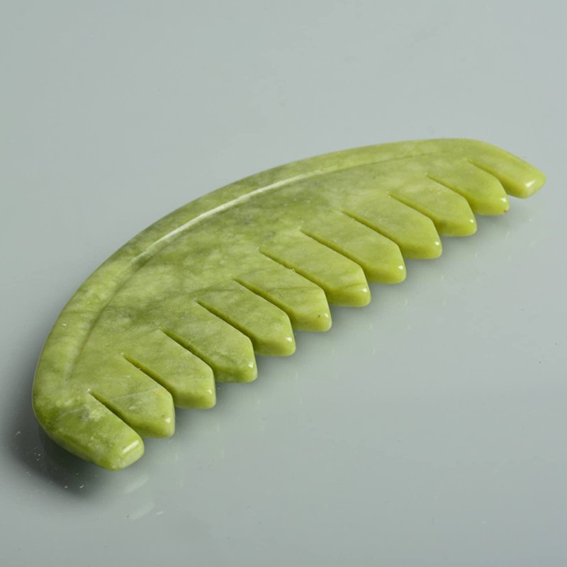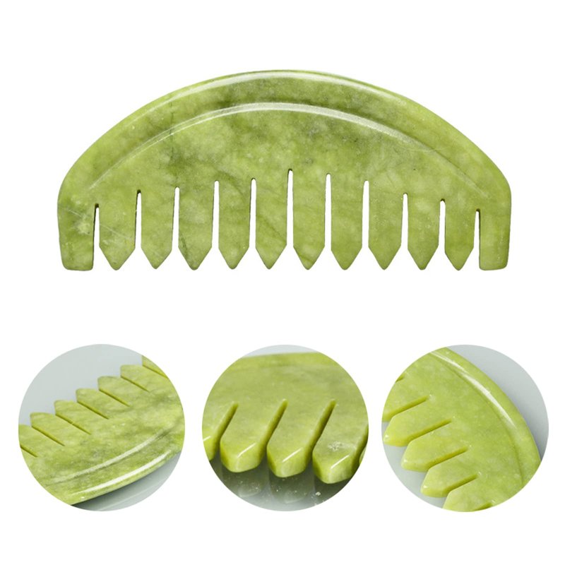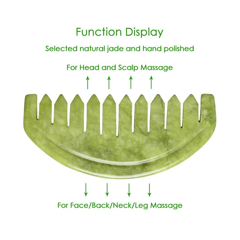 - The jade scalp comb works well on face, head, neck, back, hand and feet, help release muscle tension, tighten the skin and delay the appearance of visible skin aging.