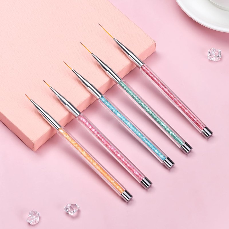 Brush handle is filled with dazzling shells glitter. These shimmering flakes add a mesmerizing effect to your creations, making them truly stand out. With their soft and non-shedding bristles, these brushes offer a smooth application, allowing you to achieve flawless lines with ease.