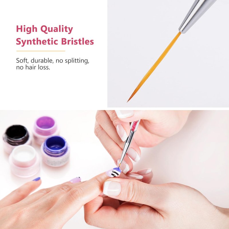 - 【Easy to Clean and Maintain】Our nail liner brushes are easy to clean with water or brush cleaner, making them convenient for repeated use. The synthetic fiber bristles are resistant to shedding, ensuring long-lasting performance for your nail art creations.