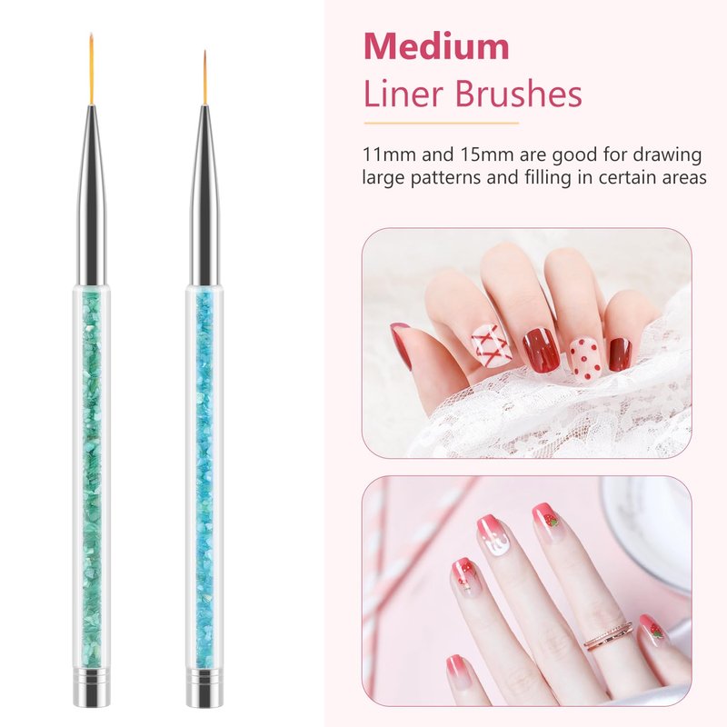 - 【Acrylic Handle for Durability】The brush handles are made of premium acrylic material, providing sturdiness and longevity. They are designed to give you a comfortable grip and precise control while applying nail liner.