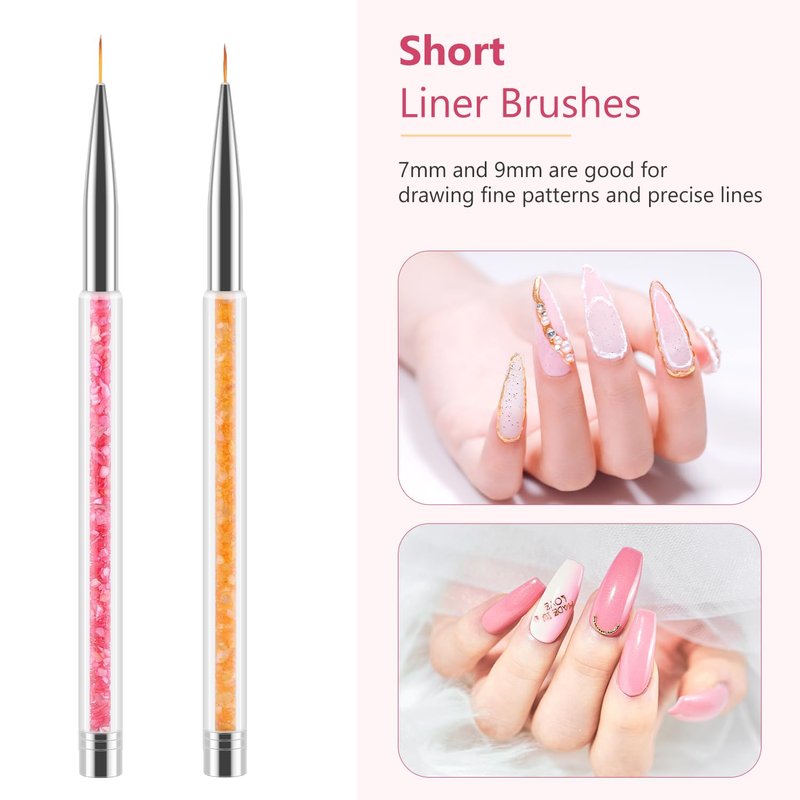 - 【Multiple Length Options】This set of nail liner brushes includes 5 brushes with lengths of 7mm, 9mm, 11mm, 15mm, and 20mm, catering to your different needs. Whether you want to create fine lines or bold strokes, these brushes will meet your expectations.