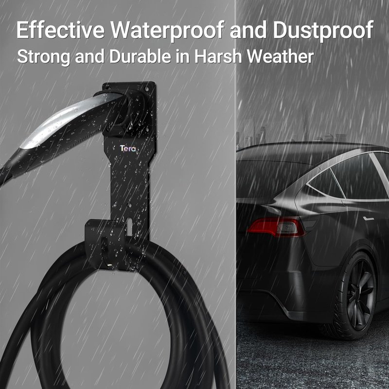 Tera EV Charger Cable Holder for Tesla: Charger Waterproof Material Electric Car Wall Mount Connector Holder with J-Hook Charging Cable Holder Organizer Electric Vehicle Charging Station Accessories