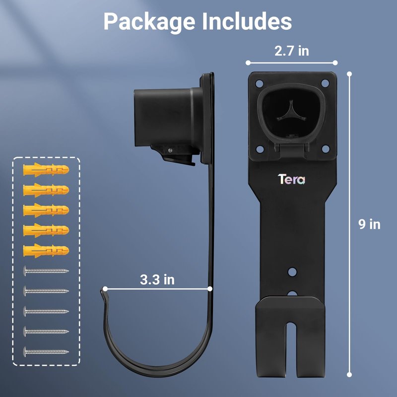 - 【Easy to Install】Tera wall mount connector designed for hassle-free installation, ensuring a smooth and convenient setup process. You can effortlessly set up the wall mount in no time. Additionally, we provide all the necessary accompanying materials, making the installation even more straightforward. Whether you are a DIY enthusiast or a first-time user, our ev charger holder easy installation feature ensures that you can quickly and easily enjoy the benefits of electric vehicle charging.