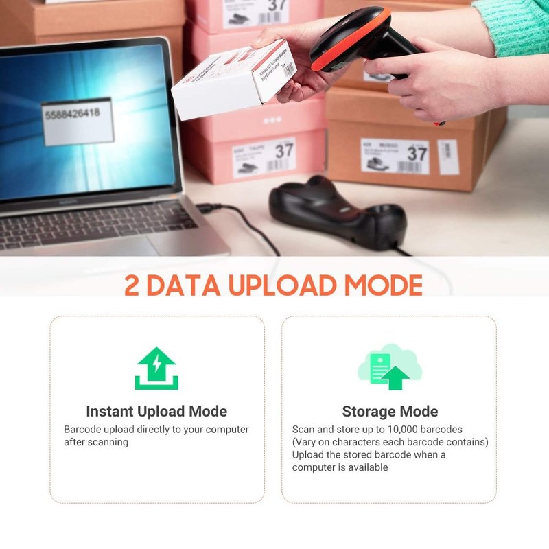 - 【Connect via 2.4G Wireless / USB Wired】Tera HW0008 barcode scanner works with 2.4G wireless and USB wired transmission. The charging cradle functions as 2.4G wireless receiver, please make sure to plug it in to your computer in order to enable data transmission. When tranmistting data via USB wired, simply plug and play, no driver or software installation needed. HW0008 does not work with Bluetooth.