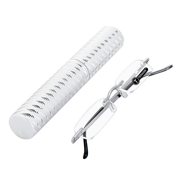 TERAISE Upgrade Lightweight Reading Glasses Frameless Readers clear lens for Men and Women w/Pen Clip Tube Case (2.5X)