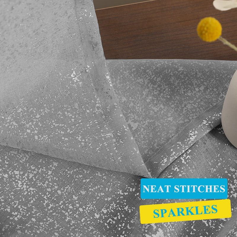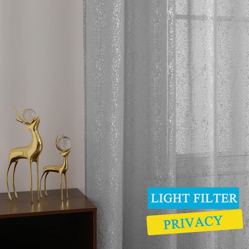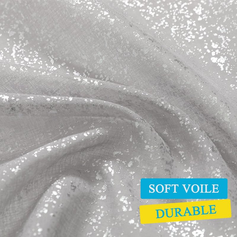 - Unique Shimmer Silver Grey Curtains - Chic sparkle voile sheer curtains feature metallic silver foil printed spots will instantly glam up any rooms in your house. Ideal for bedroom, living room, dining room or used as backdrop for party/celebration and more...